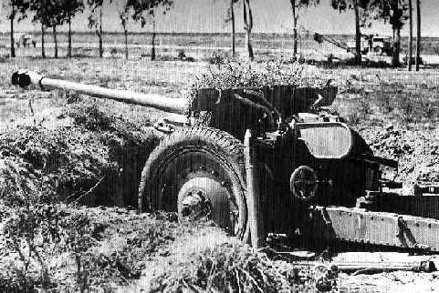 | Topo: Le canon léger 1936 est une très bonne pièce d'artillerie utilisée autant pour l'appui-feu d'infanterie que la lutte antichar. Il utilise la même munition que le canon du char T-34, mais pouvait également utilisée la vieille munition 76.2mm de la Première Guerre mondiale. Il a été distribué au niveau de la division d'infanterie, et utilisé initialement durant les accrochages en Extrème-Orient et en Finlande. L'apparition de ce canon fut un choc pour les Allemands durant l'opération Barbarossa car il pouvait facilement détruire les chars. En 1942, les Allemands l'ont déployé en Afrique du Nord sous l'appellation PaK-36 pour pallier à un manque d'armes antichar et le Modèle 1936 se révéla également efficace contre les chars anglo-américains. En 1943, ce canon antichar a été déployé à des centaines d'exemplaires dans les positions fixes durant la bataille de Koursk (ci-haut). Ultériurement, 560 de ces canons ont été affûtés sur le châssis démodé du char tchèque 38T et déployés sous le nom de Marder. | ||||