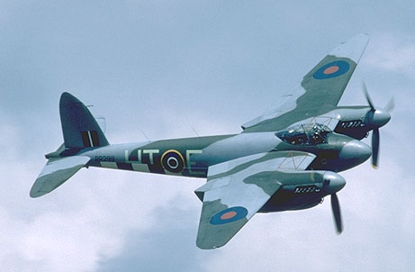| Topo: Surnommée la "merveille de bois", le De Havilland Mosquito fut l'un des principaux outils aériens britanniques durant la Seconde Guerre mondiale. Construit surtout en contreplaqué et en balsa, avec le minimum de pièces métalliques, le Mosquito devait incarner la polyvalence au plus bas prix unitaire possible. Trois versions furent produites. La première fut le chasseur de nuit et il entra en service à l'été 1941; elle se mua rapidement en chasseur-bombardier de jour. La seconde fut le bombardier non-armé défensivement qui pouvait, au besoin, être converti en avion de reconnaissance photo. La troisième fut l'appareil de frappe TR à basse altitude contre les bases et les navires allemands en rade, avec son canon de 57mm. Cet appareil convainquit la RAF de la validité du concept de frappe aérienne à basse altitude et à grande vitesse; un concept qu'elle avait apprise des Allemands avec leurs raids rase-mottes de Me-110 sur ses bases de chasseurs. Le Mosquito demeura en service jusqu'en 1950. Il inspirera la conception du bombardier léger réacté Canberra. | |||