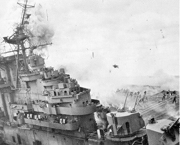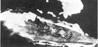 Un transporter frappé par un kamikaze – Durant une attaque de kamikazes