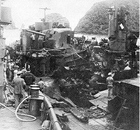 Destroyer américain hors de combat – Éclopés de kamikazes à Kemara Retto