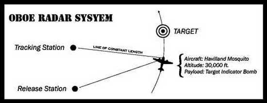 Les Britanniques vont disposer d'un nombre croissant de quadrimoteurs Lancaster. Ils délaissent les modèles de bombardiers moins réussis que sont les Stirlings et Halifax au profit de ce nouvel appareil. Plus de 16,000 exemplaires de Lancaster seront construits, dont plusieurs milliers au Canada. Leur armement défensif demeure insuffisant – cela explique pourquoi le Bomber Command préfère les utiliser de nuit, en se fiant sur les aides électroniques. En plus de porter le récepteur gonio Gee, les Lancasters sont munis d'un radar air-sol appelé H2S, capable de détecter le terrain et de suivre le relief en pleine obscurité et au-travers des nuages. ;Les ingénieurs mettent au point un système de pointage de cibles appelé Oboe. Il comprend des stations au sol dont les antennes émettent un signal de référence semblable au Gee, et dont les bombardiers se servent pour se guider sur leurs cibles. Le navigateur n'avait qu'à suivre les faisceaux émis par ces stations terrestres; dès que deux lignes convergaient vers un même point, le bombardier éclaireur muni d'un récepteur Oboe pouvait dire aux autres de larguer leurs bombes sur l'objectif ainsi vectorisé. Ce système fut utile pour bombarder dans des conditions très nuageuses. Il avait une précision de 600 mètres par rapport à la cible visée. Oboe fut testé pour la première fois en 1942, au-dessus de Lorient et de St-Nazaire. Son seul problème était celui de sa portée: il pouvait baliser le bassin industriel de la Ruhr, mais pas au-delà.