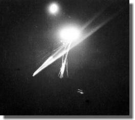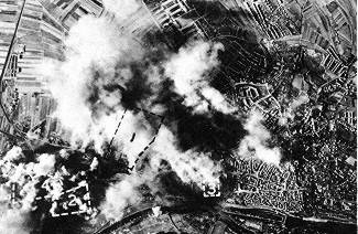 Mais les groupes de bombardiers américains avaient subi des pertes importantes durant tout l'été 1943, et ils n'étaient pas assez remis de leurs blessures pour accompagner les Britanniques à Berlin. Le Bomber Command sera obligé d'y aller seul. L'effort ordonné ne durera pas quatre semaines, mais quatre mois. Dès que les aviateurs britanniques apprirent qu'ils allaient bombarder Berlin, ce fut un éclatement de joie: tous avaient hâte d'allumer un feu dans le ventre de l'ennemi (ci-contre). Le Bomber Command débute ses raids dans la nuit du 3 au 4 Septembre: 306 Lancesters balisés par 4 Mosquitos approchèrent Berlin par le nord-est. C'était un trajet encore plus long et périlleux que celui des Américains sur Schweinfurt. Les formations de bombardiers britanniques furent traquées et interceptées à plusieurs reprises par la chasse allemande guidée au radar. Un quartier industriel et deux quartiers résidentiels sont frappés. Pour la première fois, la capitale fut privée d'électricité à cause de bris dans les centrales. Berlin perd également ses brasseries.., dur coup pour le moral de la population: 442 personnes périrent – la moitié étant des civils – durant ce premier raid. Cependant, 22 Lancaster et un Mosquito furent abattus. Les avantages tactiques britanniques qui ont prévalu lors des raids sur Hambourg ne servent plus à rien; la défense aérienne est prête, bien rodée, et les artilleurs anti-aériens (jeunes et vieux) très motivés à faire le coup de feu.