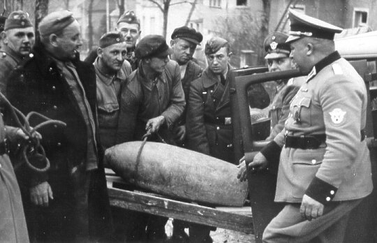 Démineurs allemands receuillant une bombe non-explosée – Goebbels constate les dégâts du raid aérien