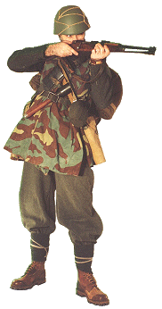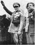 Pour aider Graziani dans ses négociations, Mussolini lui envoie le général Canevari, un écrivain fasciste très intelligent et articulé. Il réussit à convaincre Hitler de réduire le nombre de divisions de 12 à 4. Le 28 Octobre, l'accord est signé et Mussolini se dit satisfait. Graziani profite de ce succès pour demander au Duce d'incorporer les miliciens des Chemises noires dans sa nouvelle armée. Une joute oratoire éclate entre Graziani et Ricci, sans qu'il n'y ait un vainqueur. En fait, des unités de Chemises noires seront tantôt sous le contrôle de Ricci, soit de Graziani, ou placées directement sous le commandement allemand, selon les nécessités opérationnelles du moment. Par la suite, Mussolini ira miauler Keitel afin de recruter des volontaires italiens dans des camps de prisonniers en Allemagne: ce serait très déshonorant pour moi si vous ne me permettez pas de recruter 50,000 hommes sur le demi million de prisonniers internés dans vos camps. Keitel lui demande de présenter sa requête au Führer. Finalement, Hitler consent à libérer 12,000 prisonniers italiens, et dit à Mussolini que le reste de vos volontaires doivent être recrutés en Italie. A partir de la deuxième semaine de Décembre, 44,000 conscrits et 6000 volontaires se sont présentés aux recruteurs de Graziani. Cela indique qu'une petite partie de la population appuie toujours le fascisme mussolinien. Cependant, la pauvreté des ressources de la République de Salo lui permet à peine d'équiper et de nourrir les recrues. Pis encore pour Mussolini, Himmler essaie de recruter le plus de volontaires possibles dans des unités SS italiennes, afin qu'ils ne soient pas sous contrôle italien (ci-contre). Cette initiative porte un coup bas aux efforts de Graziani et de Ricci, car les conditions d'entraînement et de vie sont meilleures dans la SS: meilleure nourriture, et solde supérieure à ce que peut offrir le gouvernement de Mussolini. Environ 13,000 Italiens se joignent dans la SS. Le général Canevari doute de la valeur militaire de ces SS italiens et, narquois, prévient Himmler: la plus grande partie d'entre eux ne valent rien. Vous verrez, ils déserteront dès qu'ils retourneront en sol italien.