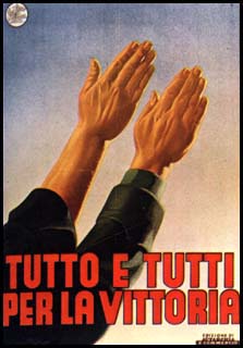 A partir de 1940, elle se voit restreinte dans sa liberté de mouvement dans ses grandes villes, et doit subir les effets du rationnement. Les familles qui ont un fils au front sont dans l'angoisse de le voir revenir sain et sauf. Le gouvernement de Mussolini essaie de mobiliser la population dans sa lutte contre la Grande Alliance. Le mot d'ordre est: tout pour la victoire mais sans trop de succès car le cœur n'y est pas. Les Italiens se plient bon gré mal gré aux consignes et ordres donnés, mais sans faire de zèle. La population considère avoir été traînée par les cheveux dans une guerre européenne dont elle ne voulait pas. Les milieux dirigeants orbitant autour du gouvernement étaient conscients des limites économiques et militaires de l'Italie, et avaient averti Mussolini dès 1939 que suivre Hitler exigerait des efforts qui allaient au-delà du poids réel de l'Italie dans les affaires européennes.