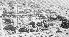 Peinture du raid – La raffinerie de Steaua endommagée – Citernes de stockage détruites
