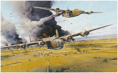 Le 4 Septembre 1943, au lendemain de la capitulation italienne, le 460ème Groupe fit son raid sur Ploesti. Les 178 B-24 décollèrent de Sicile et de Tunisie dans des formations en basse altitude à la fois pour éviter la décection et surtout économiser le carburant. À moins de 30 milles de l'objectif, la formation se divisa en deux vagues. La première devait frapper les citernes à faible altitude en formation serrée. Ce fut un succès. L'efficacité des tirs anti-aériens a été perturbée momentanément par l'arrivée soudaine de cette vague. Le tonnere des explosions produit de nombreux incendies qui obscurcissent le ciel et gêne le pointage des batteries anti-aériennes. Six bombardiers B-24 furent abattus, la plupart par les chasseurs allemands basés sur des terrains en région de Ploesti.